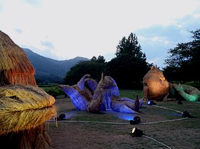 新潟の伝説をモチーフにした4体のわらアートがライトアップされてきれいでした。