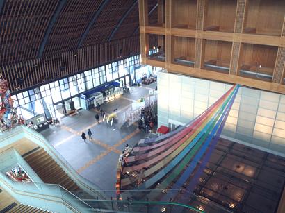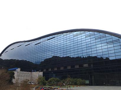太宰府天満宮に参拝してから向かったので、アプローチのトンネルを抜けると、視界いっぱいにダブルスキンのガラスカーテンウォールが広がり、その巨大さが印象的です。