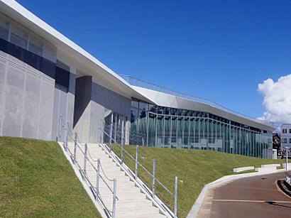 設計は「平田晃久」です。異なった機能を持った空間を分散配置しながら全体を大きな屋根でつなぐ手法はトレンドに沿ったものです(当然、屋根の上が広場になっている。)。分散した空間をつなぐ大空間は、広場の機能と閲覧室の機能が融合した明るく心地よいものでした。天井を和紙で覆ったのも地域性を感じられて良いと思いました。